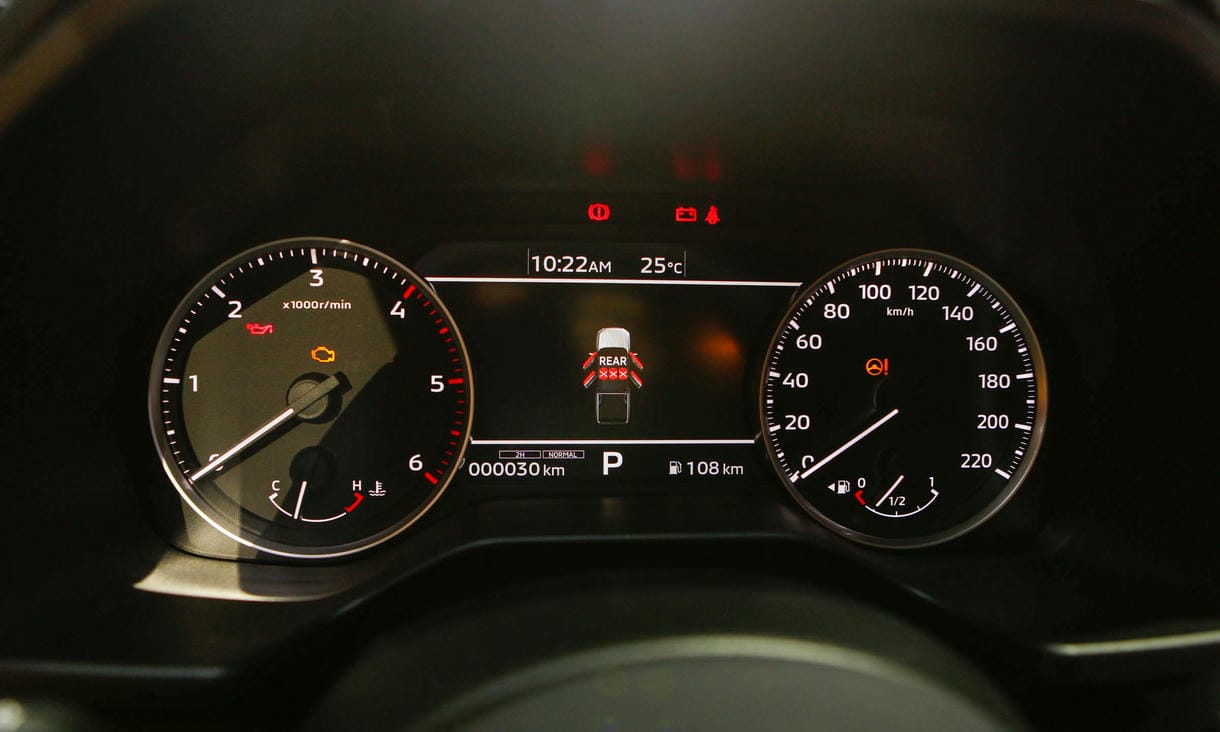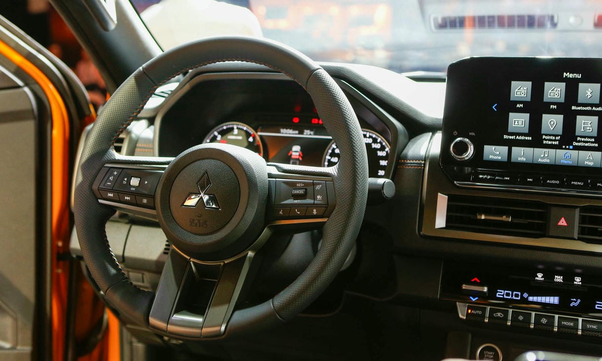 Xe sử dụng hệ thống lái trợ lực điện trên bản cao cấp nhất Athlete, số vòng quay vô-lăng từ trái sang phải là 3,3 vòng, theo chia sẻ của Mitsubishi, trong khi bán kính vòng quay chỉ 6,2 m. Sau vô-lăng, cụm màn hình kỹ thuật số 7 inch kết hợp đồng hồ analog thể thao.