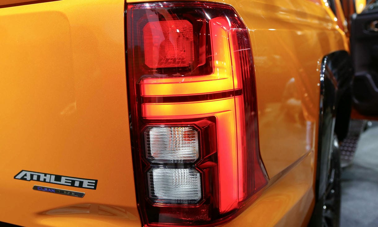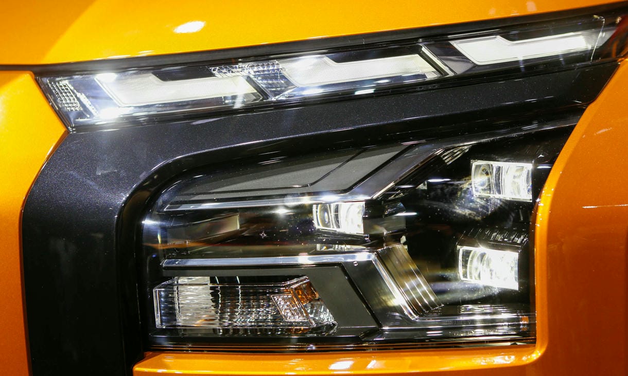 Đầu xe mang dáng vẻ hầm hố, mạnh mẽ với thiết kế tạo hình chữ X lớn, hai bên là đường viền crom lớn tạo hình chữ C tạo sự phân tách rõ rệt giữa đèn pha LED phía trên và đèn báo rẽ cùng đèn sương mù nằm phía dưới.