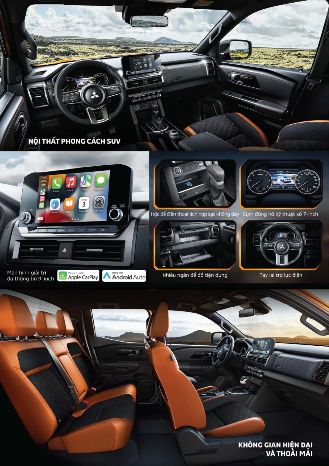 Cùng với đó là các trang bị đáng chú ý khác như: ghế bọc da kết hợp da lộn, ghế lái chỉnh điện 8 hướng, điều hòa tự động 2 vùng, có cửa gió cho hàng ghế thứ 2 đề nổ bằng nút bấm. Với 19 vị trí chứa đồ đa dạng, All-New Triton đáp ứng mọi nhu cầu lưu trữ đồ dùng cá nhân của người lái và hành khách.